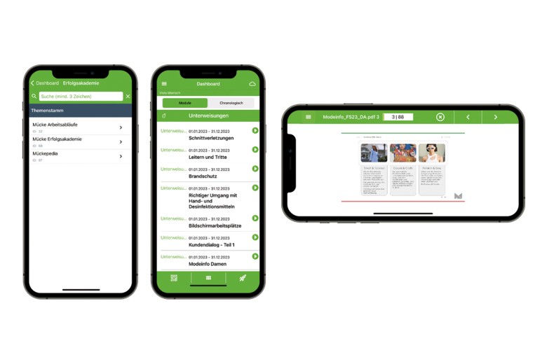Dienstpläne am schwarzen Brett, schriftli che Urlaubsanträge, Schulungsmaterial in dicken Papierstapeln – all das ist beim Textil- und Schuheinzelhändler Mücke längst Geschichte. Bei der Unternehmensgruppe können die Angestellten mittlerweile viele Geschäfts- und Administrationsprozesse komplett digital absolvieren – und das deutlich schneller als in der bisher eher analogen Form.