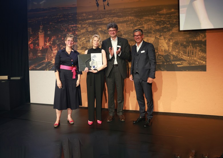 Auszeichnung mit dem August-Blanke-Preis der ANWR GROUP (von links) Laudatorin Britta Goertz, Kirsten Graßmay, Aufsichsichtsratsvorsitzender Holger Baierl und Vorstandsvorsitzender Frank Schuffelen